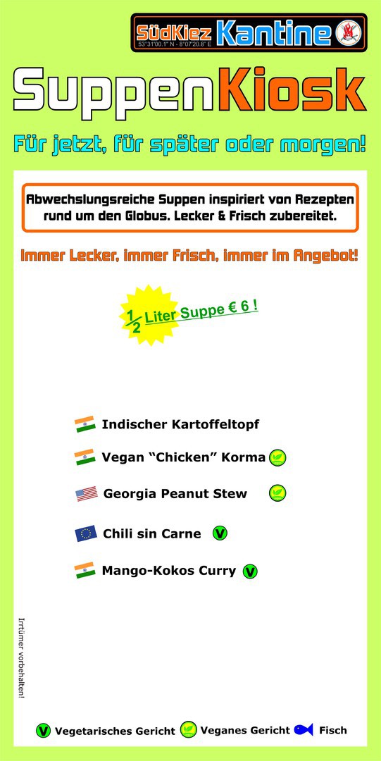 Liebe Gäste, die SüdKiez Kantine hat vom 18. Juli bis 29. Juli 2022 Betriebsbedingt geschlossen.